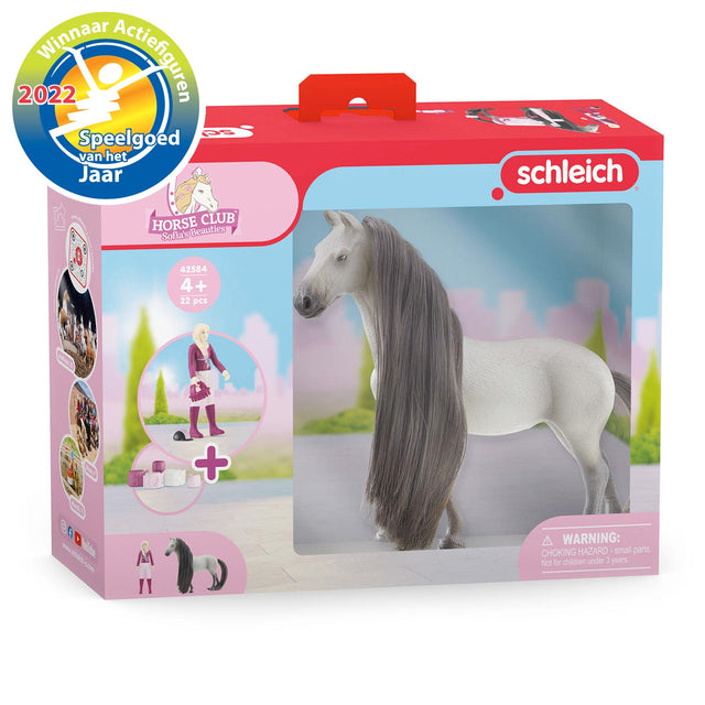 Sofia's Beauties zijn de nieuwste toevoeging aan het schleich®-assortiment en zullen het hart van kleine fans sneller laten kloppen! Deze paarden hebben prachtige kam- en stylingsmogelijkheden voor hun manen en staart, waardoor er eindeloos speelplezier gegarandeerd is. De afmetingen van het speelgoed zijn 24,5 x 6 x 19 cm en het is geschikt voor kinderen vanaf 6 jaar.