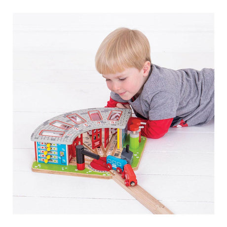 Bigjigs houten rails - luxe remise voor 5 treinen
