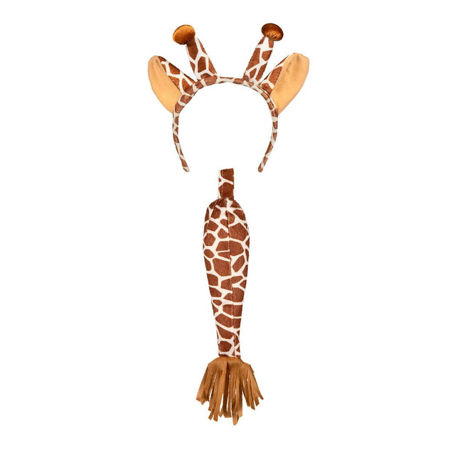 Verkleedset giraffe bestaande uit een haarband met oren en horens en een staart.