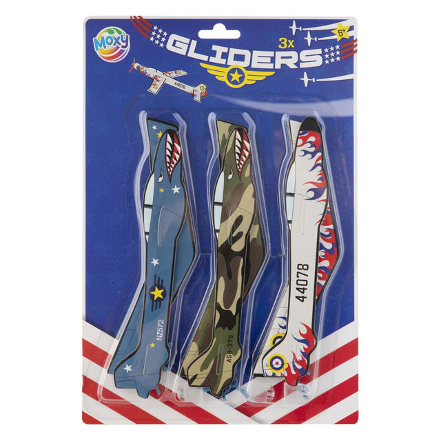 Set met 3 vliegtuigjes, zelf te monteren. Geschikt voor kinderen vanaf 5 jaar.