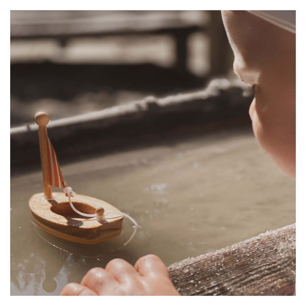- Set bevat 2 houten zeilbootjes