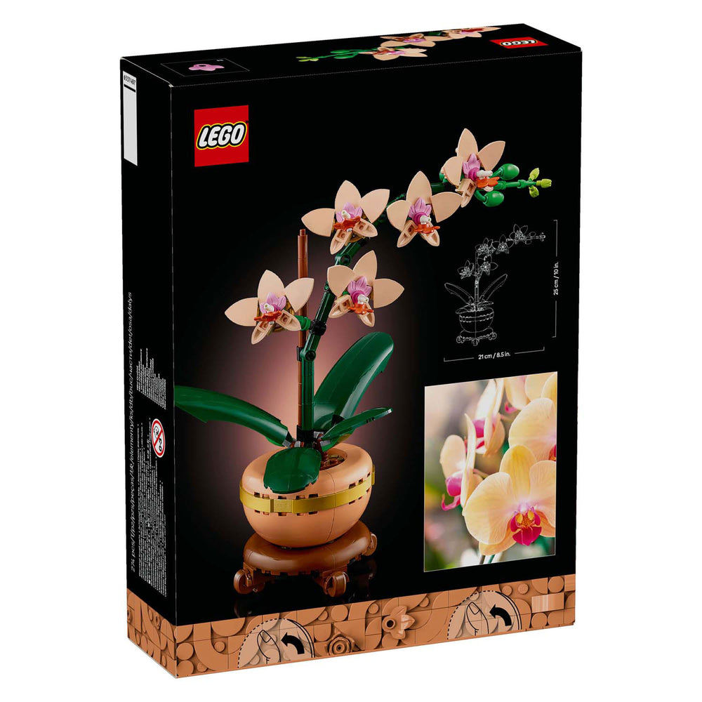- Afmetingen – de LEGO® orchidee heeft 274 onderdelen en is ca. 25 cm hoog
