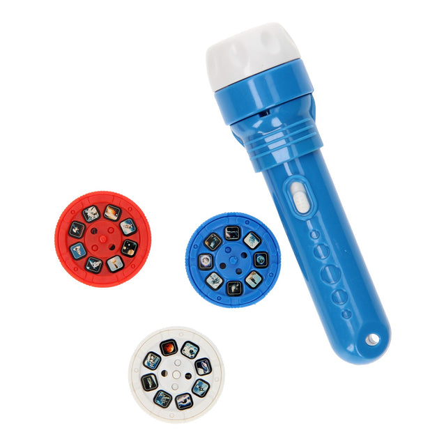 Toffe Projectie Zaklamp Space met maar liefst 3 verschillende clips met elk 8 afbeeldingen van het heelal, planeten en astronauten. Schijn de zaklamp in het donker op de muur en zie welke dinosaurus op de muur verschijnt! Werkt op 3x knoopcelbatterijen (inbegrepen).