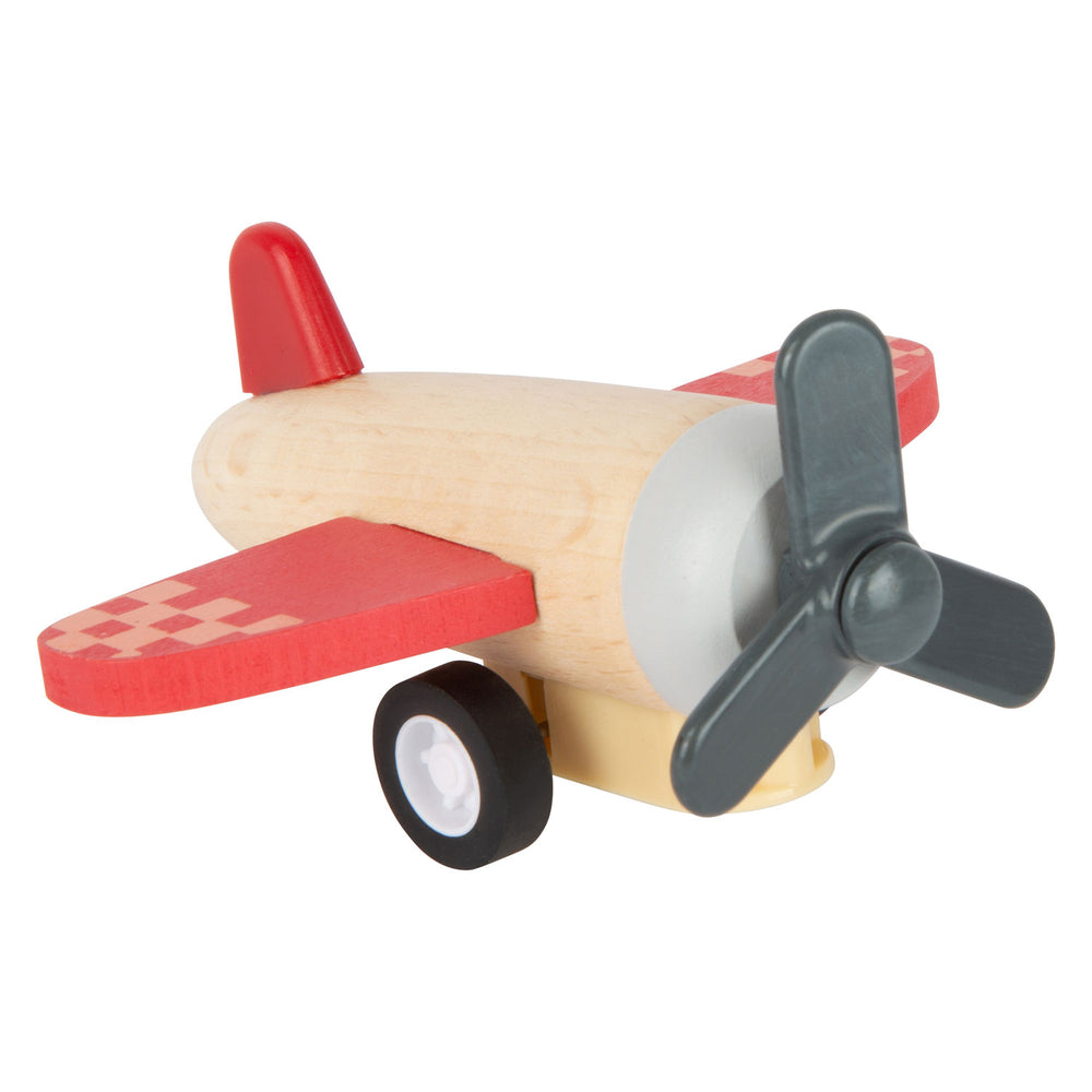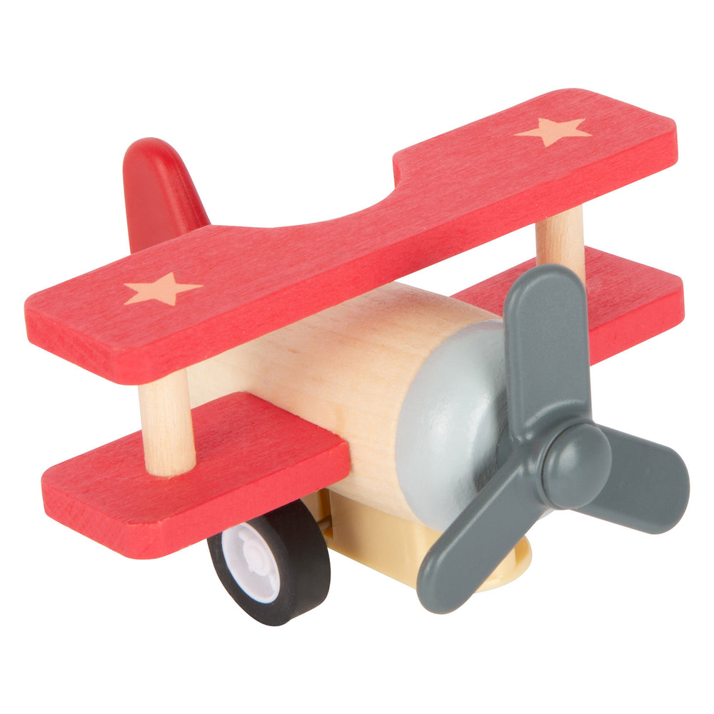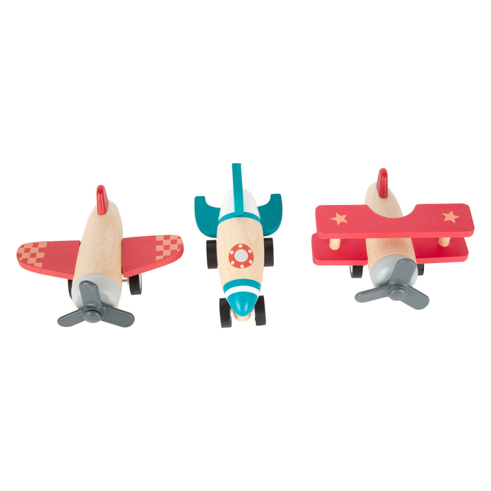 Deze drie hoogvliegers van robuust hout zorgen voor gegarandeerd speelplezier in de kinderkamer. Met het ingebouwde terugtrekmechanisme kunnen de vliegtuig, de dubbeldekker en de raket vol actie en snelheid worden gelanceerd. Dit is het ideale cadeau voor jonge vliegtuigfans!