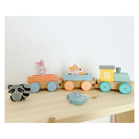 Small Foot Houten Trein met Bosdieren Pastel, 9dlg.