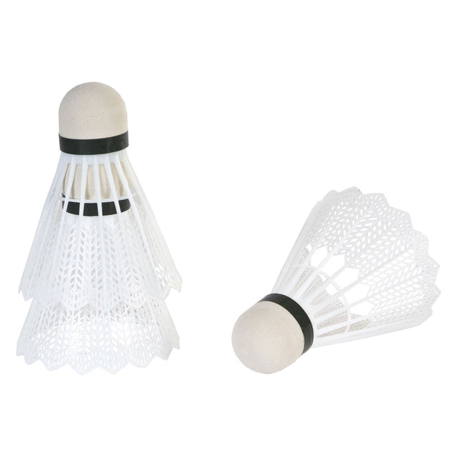SportX badmintonshuttles in witte kleurstelling. Deze shuttles gaan lang mee, zijn extra duurzaam en zijn voorzien van een nylon dop. Drie stuks verpakt in koker.