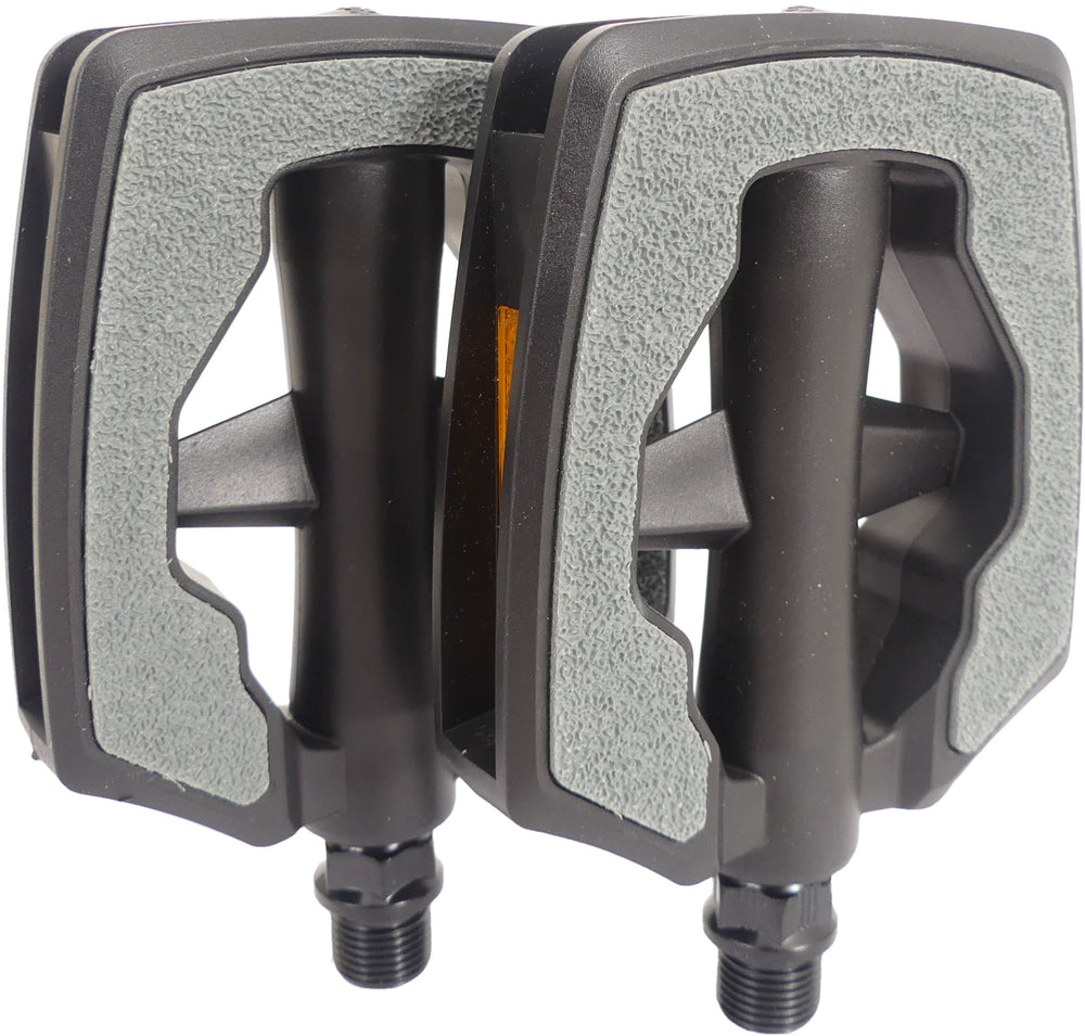 Een fietspedaal met aan beide kanten een "antislip" inzet van gepatenteerd materiaal, een duurzaam Polypropyleen ashuis en kooi, speciaal ontworpen voor het gebruik op elektrische fietsen. Ook te gebruiken op stads-, trekking- en hybridefietsen.