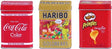 # blikjes 1 van Coca Cola, 1 van Haribo en 1 van Pringles om mee te spelen in je winkeltje afmeting per blikje 7x5x4x5 cm. Advies leeftijd vanaf 3 jaar.