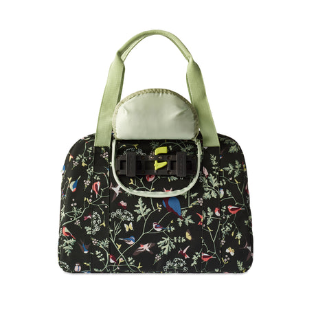 Basil Wanderlust Carry All Bag - zwarte fietshandtas met kleurrijke vogelprint