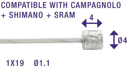 Schakel binnenkabel Elvedes 2250mm RVS Slick ø1,1mm Shimano SRAM N-nippel (op kaart)