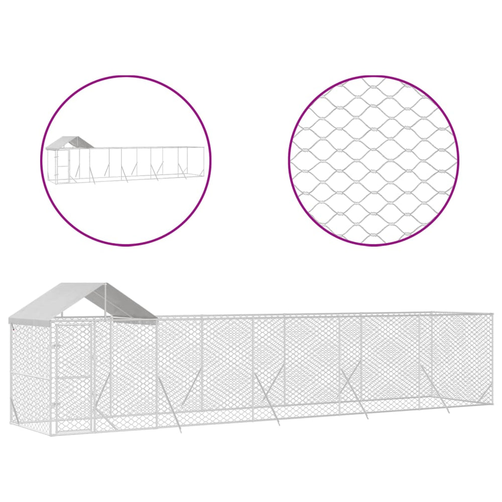 VidaXL Hondenkennel met dak 10x2x2,5 m gegalvaniseerd staal zilver