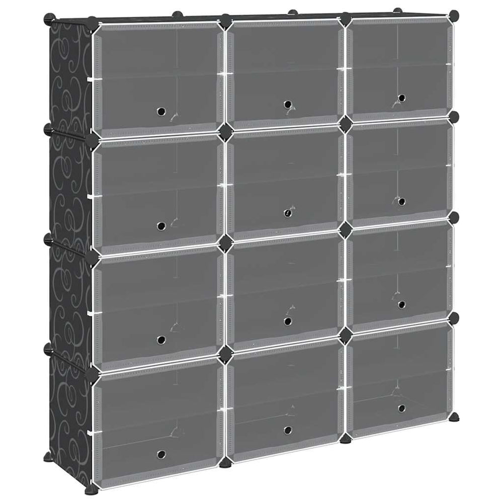 Vidaxl opbergmeubel met 12 vakken en deuren polypropeen zwart