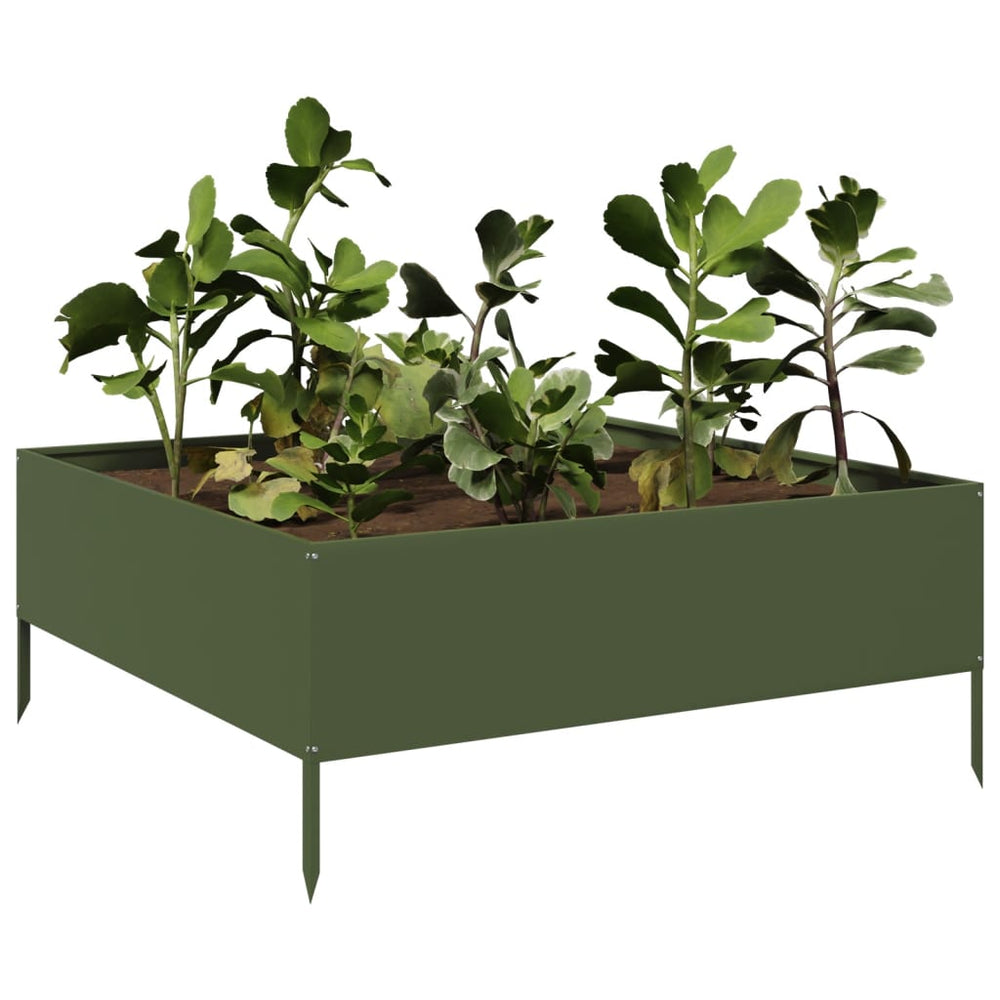 Vidaxl plantenbak verhoogd 100x100x25 cm staal olijfgroen