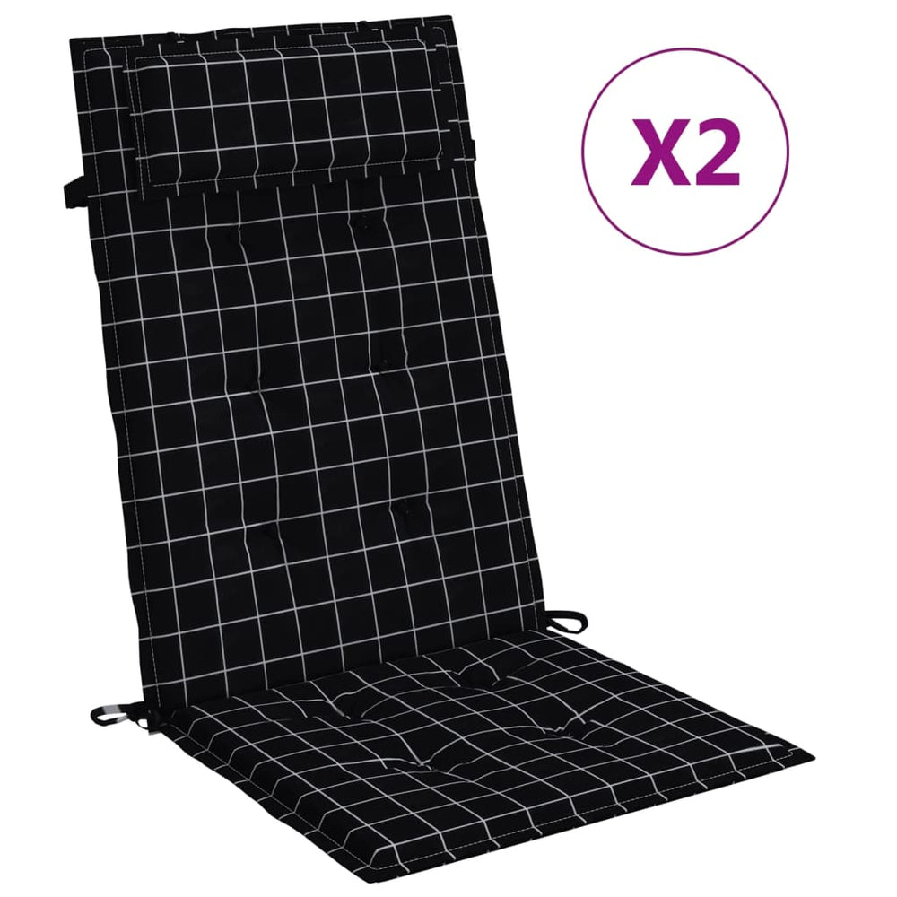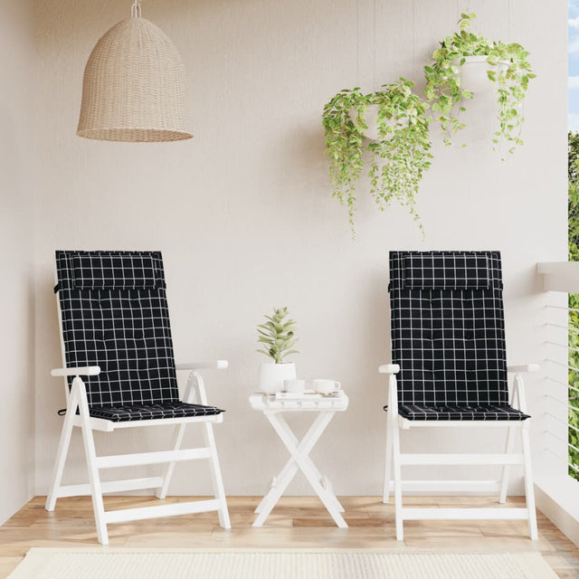 Vidaxl stoelkussens 2 st hoge rug ruitpatroon oxford stof zwart