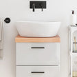 • Duurzame constructie: het wastafelblad is gemaakt van massief eikenhout, een prachtig natuurlijk materiaal. Eikenhout heeft een middenbruine kleur en een dichte nerf, wat bijdraagt aan de unieke look.