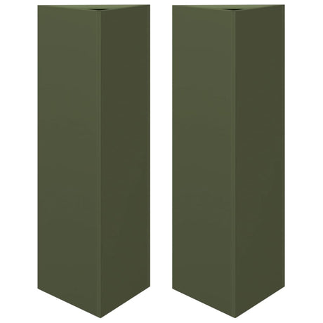 Vidaxl plantenbakken 2 st driehoek 30x26x75 cm staal olijfgroen