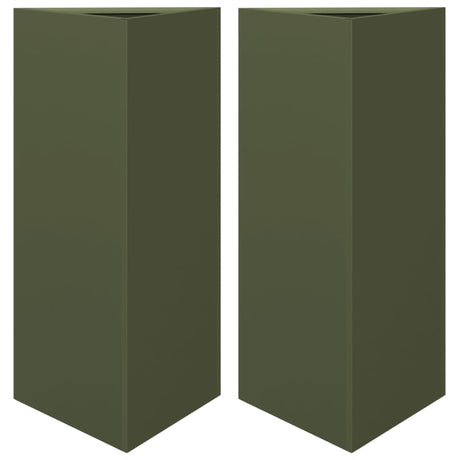 Vidaxl plantenbakken 2 st driehoek 40x34,5x70 cm staal olijfgroen