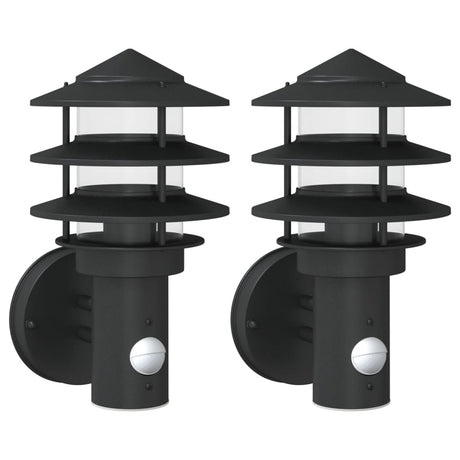 Vidaxl buitenwandlampen 2 st met sensors roestvrijstaal zwart