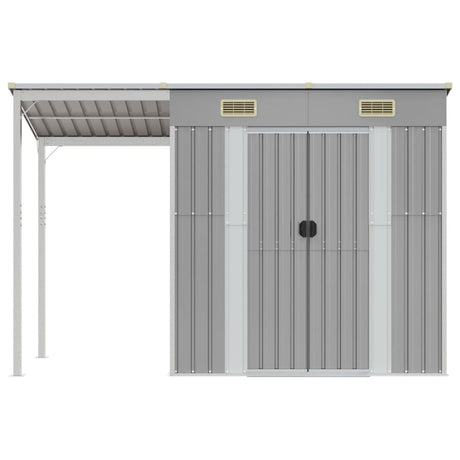 VidaXL Tuinschuur met verlengd dak 277x110,5x181 cm staal lichtgrijs