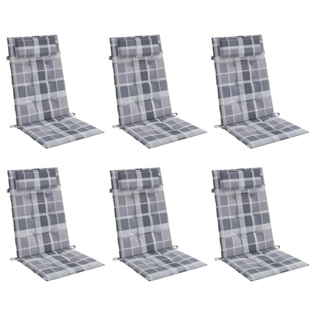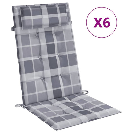 VidaXL Stoelkussens 6 st hoge rug ruitpatroon oxford stof grijs