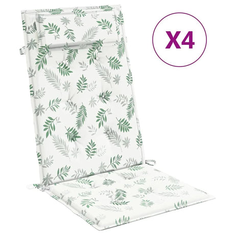 Vidaxl stoelkussens 4 st hoge rug bladpatroon oxford stof