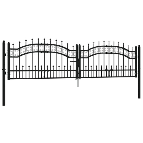 Vidaxl poort met spijlpunten 305x120 cm gepoedercoat staal zwart