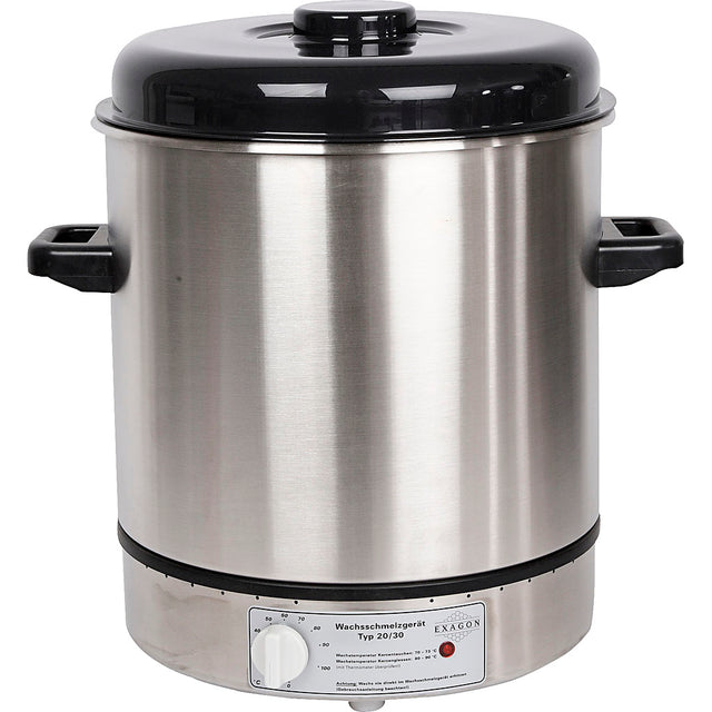 Elektrische roestvrijstalen gietpan met thermostaat met veiligheidsregeling voor gecontroleerde verwarming (30-100 °C). Perfect voor waterbaden om kaarsen te maken door de kaarsmassa gewoon in een smeltpan te gieten, zoals artikelnr. 79275 (niet inbegrepen). Uitstekende kwaliteit. 230 V-1800 W. U kunt kaarsen met de wassmelter in vormen gieten of er gedoopte kaarsen mee maken. Giet water in de wassmelter, laat de smeltpan erin zakken en giet daar de kaarsmassa in. Gebruik indien nodig een praktisch deksel dat de smeltpan op z'n plaats houdt en het gemakkelijker maakt om de temperatuur stabiel te houden (artikelnr. 79261 ). Als u kaarsen dompelt, kunt u een trechtervormige kraag (artikelnr. 79297 ) aanbrengen om morsen tijdens het dompelen te voorkomen. Stel de thermostaat op de wassmelter in op ongeveer 70 graden Celsius. Het smelten kan een paar uur duren, vooral bij grote hoeveelheden kaarsmassa. U kunt tal van vormen gebruiken om kaarsen te gieten. Kies een lont die past bij de dikte van uw kaars, zodat hij mooi en gelijkmatig brandt..