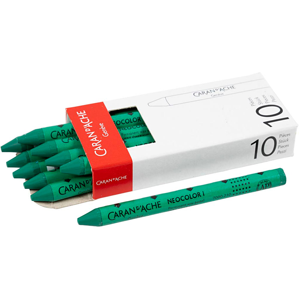 Caran dache caran d’ache neocolor i, l: 10 cm, dikte 8,5 mm, emerald green (210), 10 stuk 1 doos