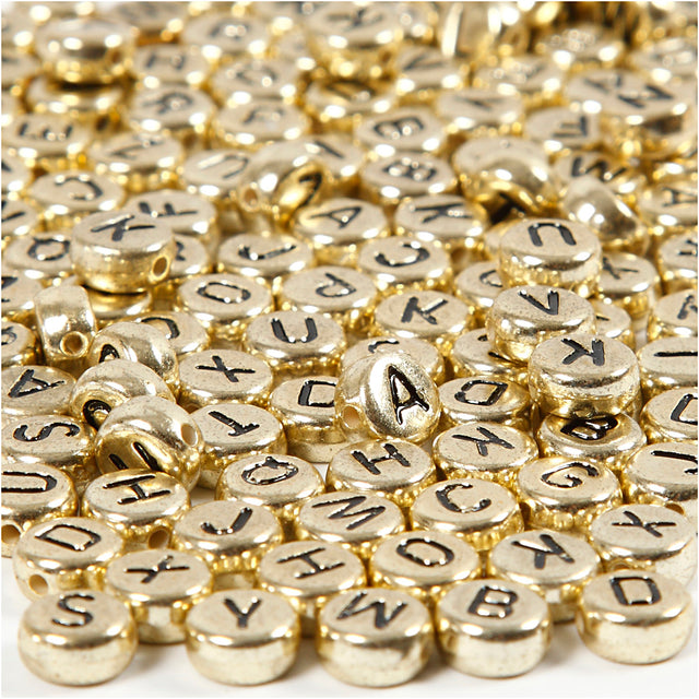 Creativ company letterkralen, d 7 mm, gatgrootte 1,2 mm, ca. 200 stuk, goud, 21 gr 1 doos
