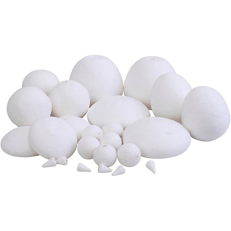 Gesponnen katoenen ballen, verschillende vormen, afm 1,5-6 cm, 140 stuk 1 doos