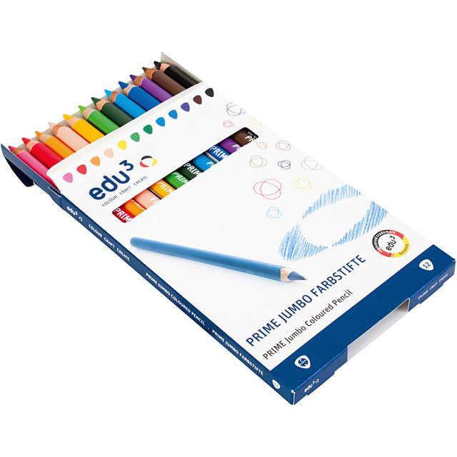 Edu3 edu jumbo kleurpotlood, dikte 10 mm, vulling 6,25 mm, diverse kleuren, 12 stuk 1 doos