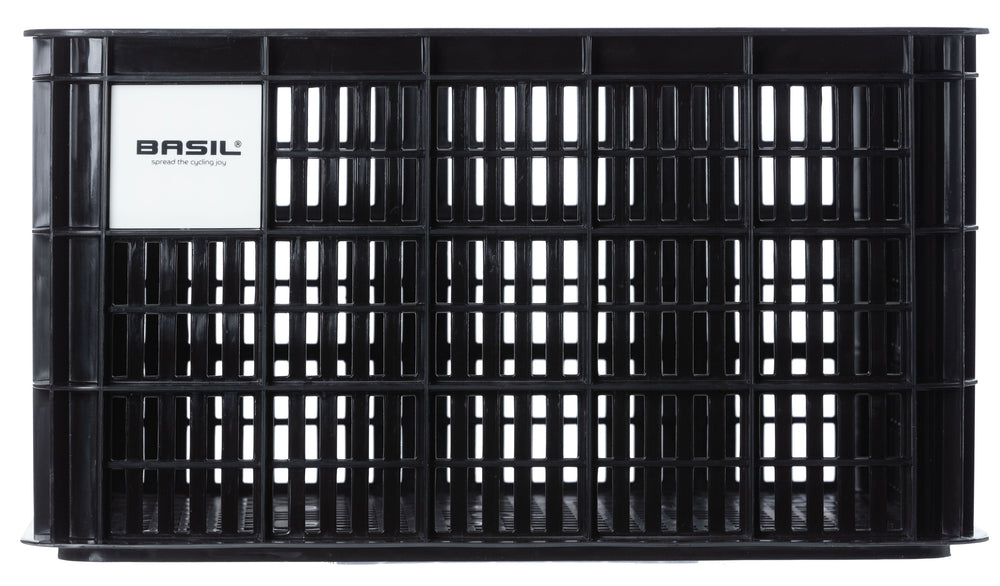 Gerecyclede fietskrat van Basil, perfect voor zware boodschappen, schooltas of sporttas. Groot formaat met een inhoud van 40 liter. Geschikt voor diverse bagagedragers op elektrische fietsen en stadsfietsen. Stevige constructie voor veilig vervoer. Duurzame keuze, gemaakt van gerecycled kunststof. Meervoudige bevestigingsopties, zoals de Crate mounting set. Multifunctionele bodem voor adapterplaten zoals MIK. Veilig onderweg met contrasterende kratklikker. Makkelijk en snel te bevestigen met Basil Crate mounting set of MIK systeem. Inclusief handvat. 2 jaar garantie.