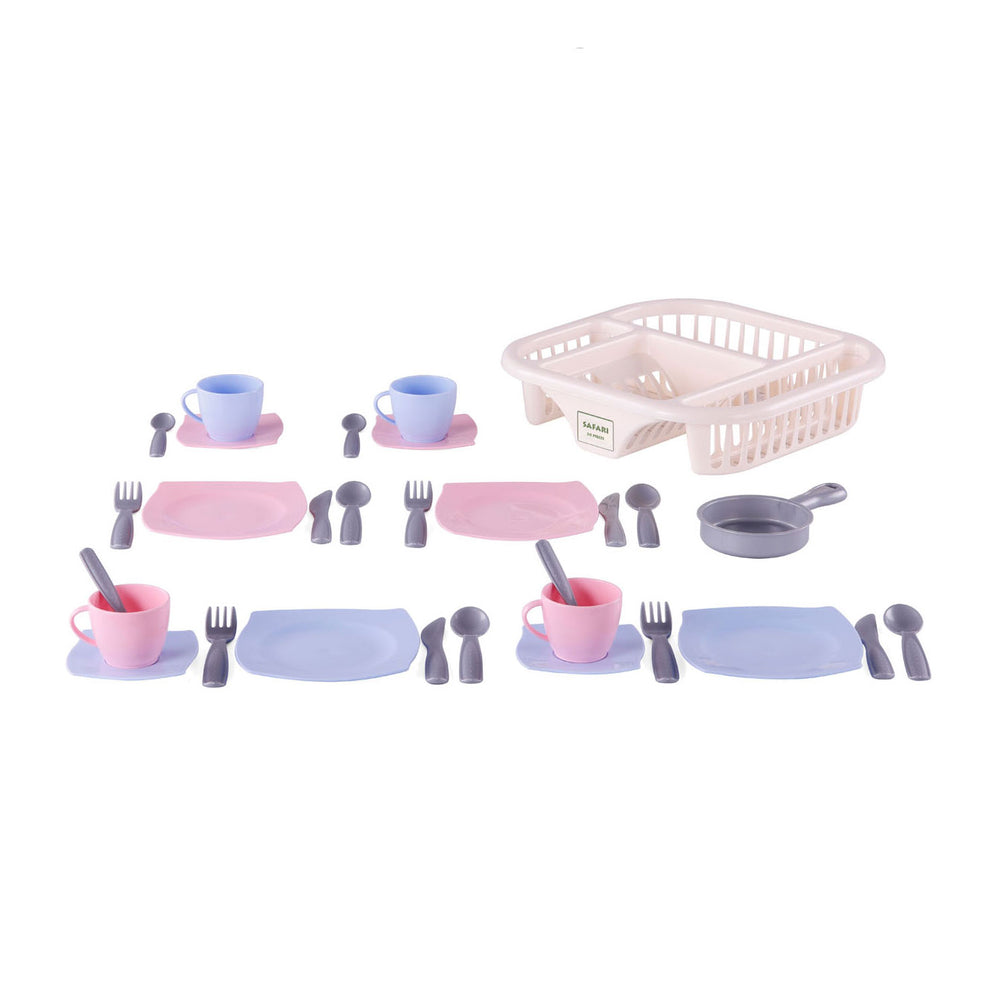 Cavallino servies met afwasrek roze, 30dlg.