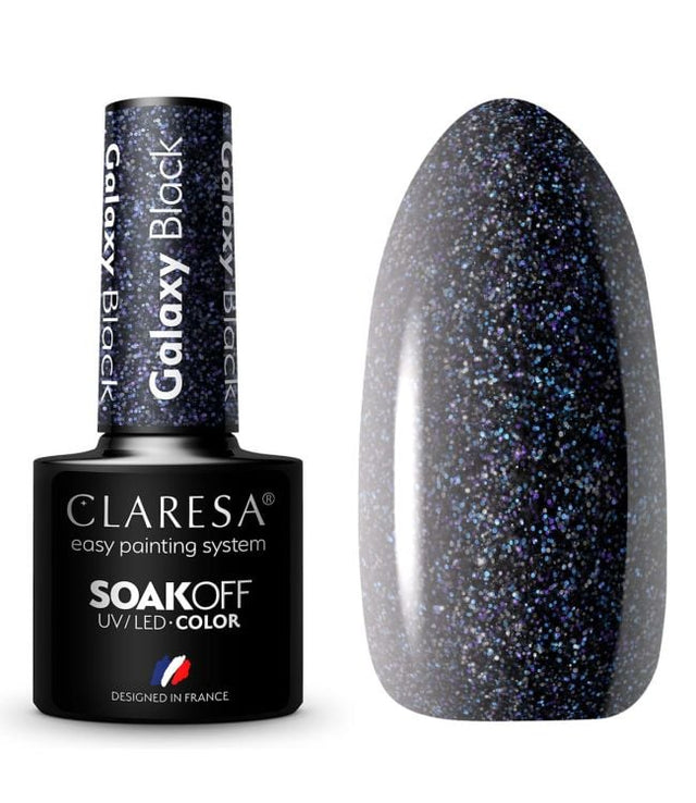 is een gel nagellak in een zwarte kleur met galactisch sprankelende finish uit de Galaxy collectie van Claresa. Reik naar de sterren en ga mee op intergalactische reis door het heelal met de Galaxy collectie! De collectie bestaat uit kleuren met unieke, driedimensionale glitters die net zo stralen als de sterren. Droom weg bij de fonkelende glitters. Galaxy Black is een diepe, zwarte kleur met een explosie aan glitters in zilveren, blauwe en paarse kleuren. De kleur doet denken aan een nachtwandeling onder de sterrenhemel. De zwarte nagellak met glanzende deeltjes geeft de nagels een uniek karakter. Perfect om op zichzelf te gebruiken of om nail-art creaties van unieke details te voorzien. De UV/LED gellak wordt ook wel hybride nagellak genoemd, omdat het voor de helft uit nagellak en de andere helft uit gel bestaat. Dit resulteert in een manicure die tot 3 weken aanhoudt én die net zo gemakkelijk aanbrengt als een nagellak. De gellak wordt uitgehard onder een UV/LED lamp wat zorgt voor grote flexibiliteit en duurzaamheid van de nagels. De kleur vervaagt niet en zal niet chippen of los laten bij juist gebruik, waardoor je 3 weken lang van mooi gelakte nagels kunt genieten. Claresa biedt een zeer uitgebreid assortiment aan unieke kleuren en tinten van transparant tot neon en prachtige glitter. Met de matte of juist glanzende top coat kun je iedere keer weer een ander resultaat bereiken. De gellak is geschikt om aan te brengen op natuurlijke nagels of kunstnagels zoals gel- of acrylnagels. Gebruik: breng een dunne laag gellak aan op de reeds uitgeharde Claresa Base Coat naar wens. Hard de laag uit in een UV/LED lamp. Herhaal deze stap naar wens tot de gewenste dekking is bereikt. Breng vervolgens een Claresa Top Coat aan en hard deze uit. Lees de volledige gebruiksaanwijzing en instructies voor het verwijderen van gellak onderaan deze pagina. Uithardingstijd: UV LED-lamp 6 W - 2 x 45 sec. UV LED-lamp 9 W - 2 x 45 sec. UV LED-lamp 48 W - 30 sec. UV LED-lamp 60 W - 15 sec. UV-lamp 36 W - 120 sec. Plus- en minpunten Zwarte UV/LED gellak met galactische glitter finish Geïnspireerd op een intergalactische reis door het heelal Tot 3 weken mooi gelakte nagels Sterk als een gel én gemakkelijk aan te brengen als een nagellak Snel uitgehard onder een UV/LED lamp Geschikt voor natuurlijke nagels en kunstnagels Vervaagt of chipt niet Zeer uitgebreid assortiment aan kleuren Let op: de kleur kan afwijken van de werkelijkheid. Dit in verband met kleurinstelling van het scherm of verlichting waarbij de foto is gemaakt. Ook kan de kleur afwijken door de top coat, zoals bij gebruik van een matte of een glanzende top coat. Gebruiksaanwijzing: Stap 1: Maak de nagels schoon en vijl ze in de gewenste vorm, Stap 2: Verwijder de glans van de natuurlijke nagels met een polijstblok, Stap 3: Duw de nagelriemen naar achteren met een bokkenbootje en verwijder ze eventueel met een nagelriemtang, Stap 4: Maak de nagels schoon en stofvrij met een cleaner en wacht tot de nagels droog zijn, Stap 5: Breng een dun laagje primer aan op de nagels. Wacht tot het droog is, dit duurt ongeveer 30 seconde, Stap 6: Breng een dunne laag basecoat aan en hard de nagels uit onder een lamp. Afhankelijk van de basecoat 30-60 seconde onder een LED lamp en 2-3 minuten onder een UV lamp, Stap 7: Breng één dunne laag van de hybride gellak aan en hard de nagels uit onder een lamp. 30-60 seconde onder een LED lamp en 2-3 minuten onder een UV lamp, Stap 8: Breng wanneer gewenst nog een laag hybride lak aan en herhaal de bovenstaande stap tot de gewenste dekking is bereikt, Stap 9: Breng een topcoat aan en hard de nagels uit onder de lamp. 30-60 seconde onder een LED lamp en 2-3 minuten onder een UV lamp, Stap 10: Maak dan de nagels schoon met een cleaner om het plaklaagje te verwijderen, Stap 11: Masseer als extra verzorging de huid rondom je nagels in met een verzorgende nagelcrème of cuticle oil. Let op: meer gepigmenteerde kleuren, zoals bijvoorbeeld zwart en wit, kunnen een langere uithardingstijd vereisen. Het is belangrijk om deze lagen dun aan te brengen en desnoods een tweede keer over te lakken en uit te harden om de gewenste dekking te bereiken. Het verwijderen van de Claresa UV/LED Hybrid SoakOff Gel Nagellak: Stap 1: Vijl voorzichtig de topcoat van de nagels af, Stap 2: Week een wattenschijfje in nail remover en leg het watje op de nagels, Stap 3: Zorg er hierbij voor dat de nagelplaat volledig bedekt is. Je kunt hiervoor nail remover folie gebruiken. Wikkel je vinger hier stevig in, Stap 4: Controleer na enkele minuten of de lak is losgeweekt. Als dit niet het geval is, wacht dan iets langer, Stap 5: Wanneer de gellak is losgelaten, verwijder de resten met een orange woodstick, Stap 6: Gebruik na het verwijderen een handcrème en een nagelriemolie voor de optimale verzorging van de handen. Ingrediënten: urethaanacrylaat, HEMA, celluloseacetaatbutyraat, hydroxypropylmethacrylaat, di-HEMA-trimethylhexyldicarbamaat, hydroxycyclohexylfenylketon, isobornylmethacrylaat, siliciumdioxidedimethylsilylaat, polyetheracrylaat, dipropyleenglycoldiacrylaat, Polyesteracrylaat, 2-methylpropanol, polyamide, fenoxyethanol [+/- calciumnatriumboorsilicaat, synthetisch fluorflogopiet, tinoxide, mica, CI 74260, CI 74160, CI 12490, CI 15850, CI 73360, CI 60725, CI 15980, CI 15985, CI 77266, CI 42735, CI 77891, CI 77491, CI 77492, CI 77499] Dit artikel is alleen voor professioneel gebruik en kan een allergische reactie veroorzaken.
