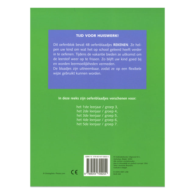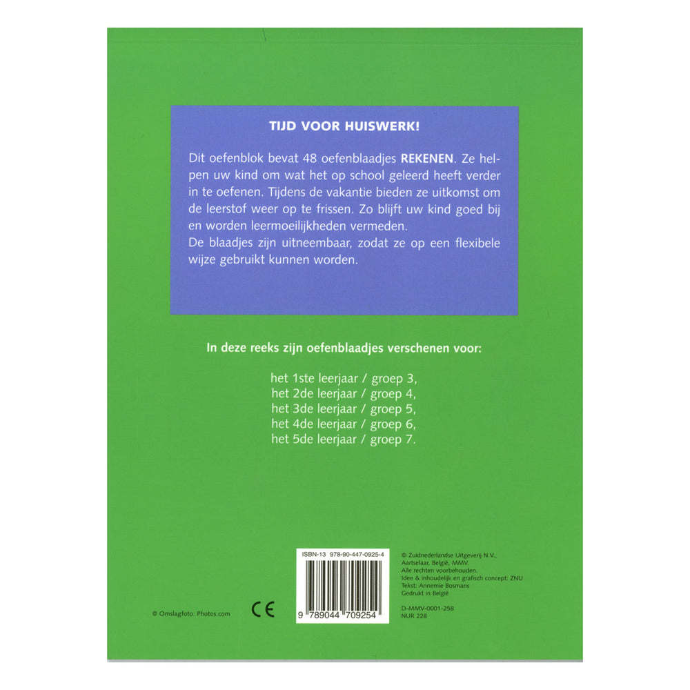 Dit oefenblok bevat 48 oefenblaadjes rekenen. Ze helpen uw kind om wat het op school heeft geleerd verder te oefenen. Tijdens de vakantie bieden ze uitkomst om de leerstof weer op te frissen. Zo blijft uw soort goed bij en leermoeilijkheden worden.