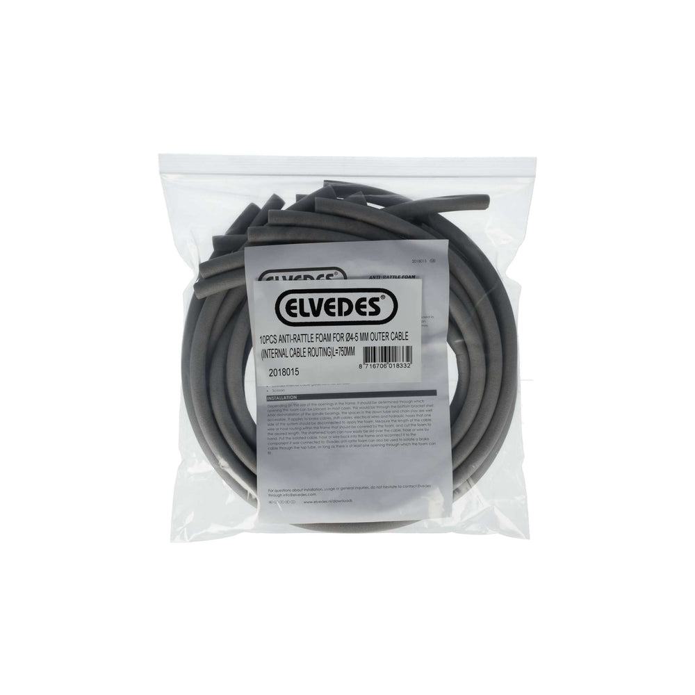 Elvedes anti-rammelslang is een grijze schuimslang met een buitendiameter van 11 mm en een binnendiameter van 6 mm. Met een lengte van 75 cm is dit jargon ideaal voor het isoleren van leidingen in je fietsframe, waardoor de kabelgeluiden worden geëlimineerd. De set bevat 10 anti-rammelslangen.