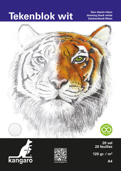 Kangaro k-5340 tekenblok a4 120 gr 20 vel wit fijne korrel kopgelijmd