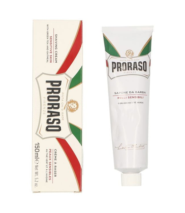is een rijke, volle scheercrème voor de gevoelige huid. Deze crème is verrijkt met havermoutextract en groene thee voor een verzachtende en kalmerende werking. Gebruik: maak een scheerkwast vochtig met heet water. Knijp ongeveer 2 cm scheercrème tussen de borstelharen en masseer met ronddraaiende bewegingen op het gezicht. Plus- en minpunten Rijke volle scheercrème Voor de gevoelige huid Voorkomt huidirritaties