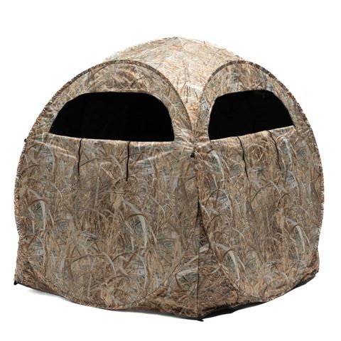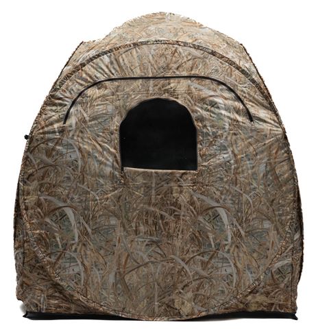 Het tentdoek is aan de buitenkant goed gecamoufleerd en aan de binnenkant zwart gecoat om het binnen zo donker mogelijk te maken. Je hebt genoeg ruimte om te zitten of rechtop te staan, en natuurlijk ruimte voor je uitrusting. Zet je tas naast je op de grond.