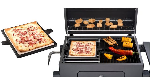 - Afmeting gietijzeren rand + pizzasteen ca. 30,5 x 23 x 1 cm