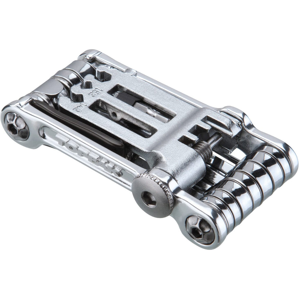 De Topeak minitool Mini 20 Pro is een handige minitool met 20 functies. Dit gereedschap heeft een lichtgewicht en sterke lichtmetalen body. Met de T10 en T25 Torx-bits is deze tool geschikt voor het werken aan hydraulische schijfremmen. Daarnaast bevat de tool een geïntegreerde kettingpons van hoogwaardig CrMo materiaal. Deze kettingpons is compatibel met 11-speed Shimano, Sram en SRAMs 12-speed EAGLE Serie, KMC kettingen.