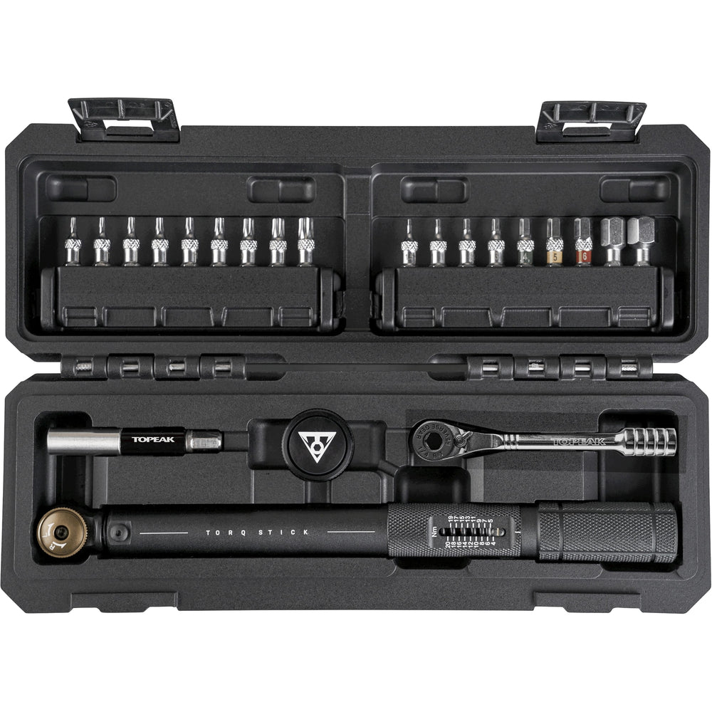 De Topeak Torq Stick Pro 4-20 is een uitgebreide set met diverse maatvoeringen van Torx bitjes en inbussleutels. Deze set bevat een bereik van 4-20 Nm en is daarmee geschikt voor verschillende toepassingen. De Torq Stick Pro 4-20 wordt geleverd met een ratelsleutel voor extra gemak.