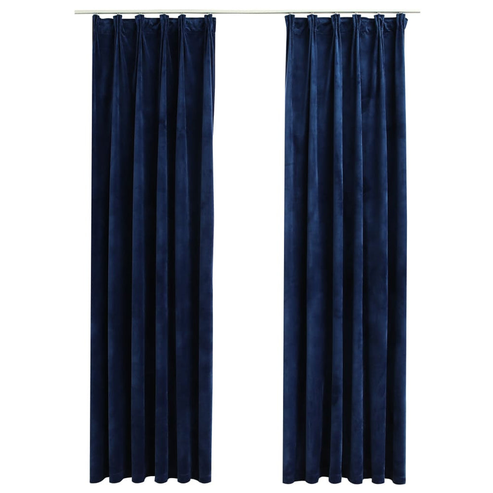 VidaXL Gordijnen verduisterend 2 st met haken 140x175 cm fluweel blauw