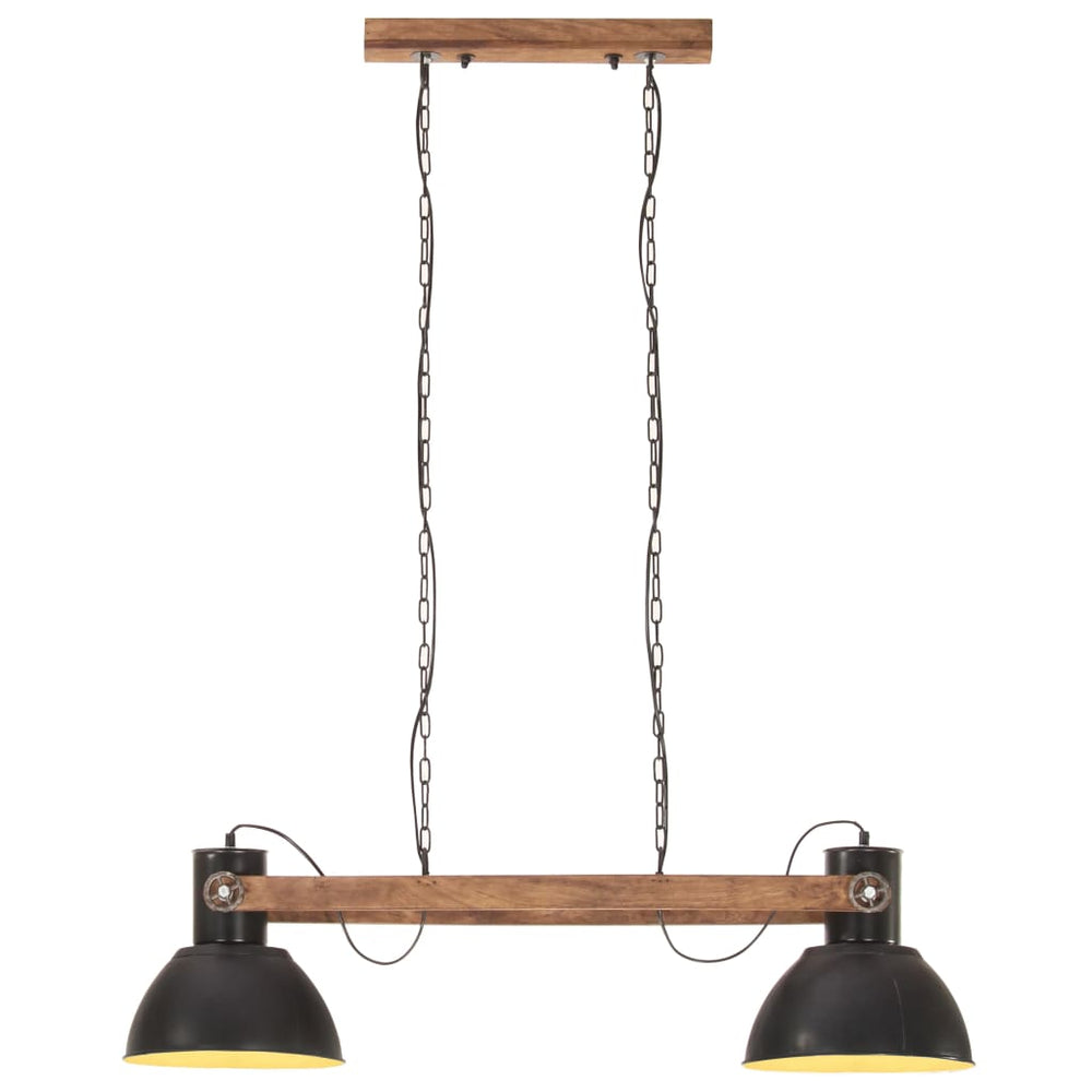 Dankzij de ijzeren lampenkap, met zwarte afwerking en massieve mangohout met robuuste bruine afwerking, past deze lamp perfect in een landelijk of industrieel interieur. De plafondlamp, met 2 lampenkappen, heeft een E27 fitting voor een peertje van maximaal 25 watt. Je kan E27 peertjes met verschillende lichtkleuren kiezen en installeren, waardoor een sfeer van ontspanning en roest ontstaat.
