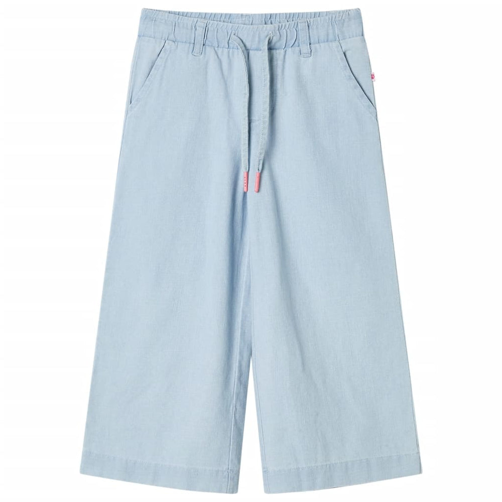 Deze kinderbroek heeft wijde pijpen, een elastische tailleband en 2 zakken aan de voorkant. De kinderbroek is zachtdenimblauw, wat mode is en bij elke andere kleur kleding verleden. De kinderbroek met wijde pijpen is gemaakt van 100% katoen, waardoor hij comfortabel, krachtig en duurzaam is.
