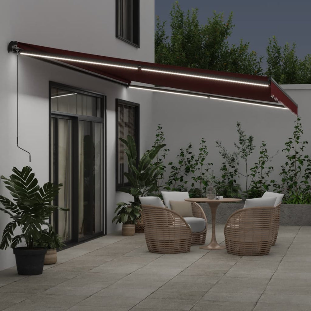 VidaXL Luifel handmatig uittrekbaar met LED's 600x350 cm bordeauxrood