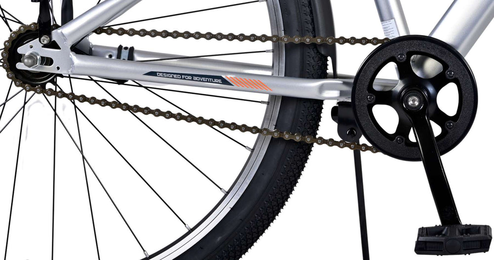 - Veiligheid staat voorop! Daarom heeft deze fiets een handrem en terugtraprem gegeven, reflectoren in de wielen en verlichting op batterij voor en achter.