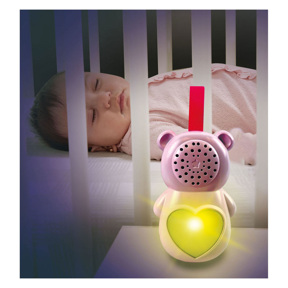 Met het Dromenland Beertje kan elke baby heerlijk tot rust komen. Dit schattige beertje biedt een zachte knuffel en lieve woordjes voor het slapengaan. Druk op de harttoets en luister naar de lieve zinnetjes, rustgevende melodietjes, gezongen liedjes en natuurgeluiden. Het beertje wordt geleverd met een uitneembaar lampje dat rustgevende muziek afspeelt. Dit lampje kan ook los gebruikt worden. Laat je baby meenemen naar dromenland met het Dromenland Beertje!